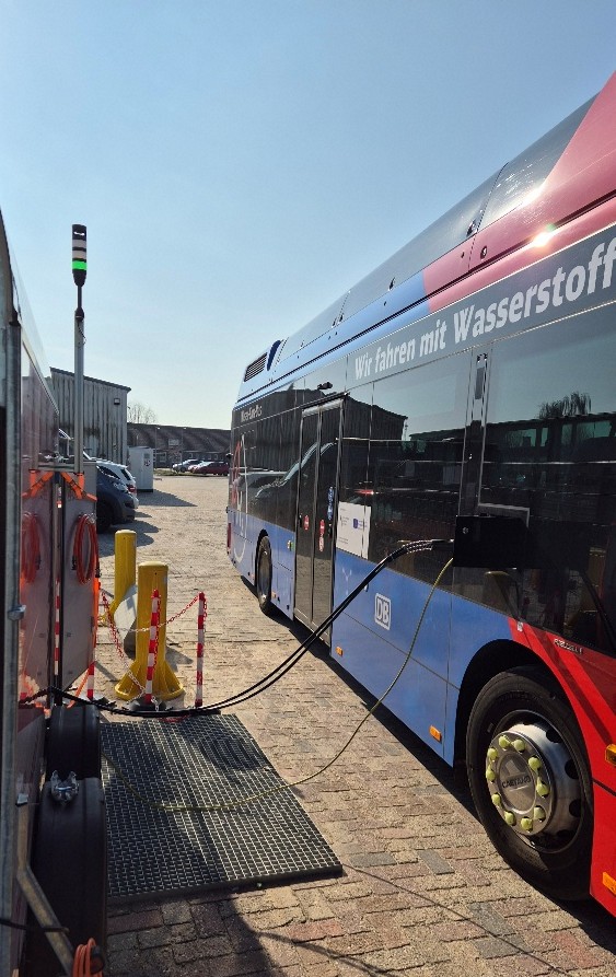 Im öffentlichen Personennahverkehr wird Wasserstoff als alternativer, CO2-neutraler Kraftstoff eine wichtige Rolle spielen. Das ttz Bremerhaven untersucht in einem Gemeinschaftsprojekt mit DB Regio, Lhyfe Germany GmbH und MoviaTec GmbH die Einführung von Wasserstoffbussen in der Region Ostfriesland. Sechs Brennstoffzellenbusse werden von Weser-Ems-Bus, einer Tochter der DB Regio AG, betrieben und fahren im Liniendienst vom Standort Jever aus im Überlandverkehr der Region. Der grüne Wasserstoff für die Busse wird von Lhyfe in Hochdrucktrailern geliefert. Als Betreiber der gesamten Tankstellenanlage am Standort Jever tritt die Firma MoviaTec auf. Das ttz Bremerhaven begleitet die Einführung der Busse im Praxisbetrieb wissenschaftlich und stellt die eigene mobile Tankstelle zur Verfügung. Dabei werden wichtige Daten und Informationen über den Betrieb der Busse im täglichen Einsatz gewonnen.