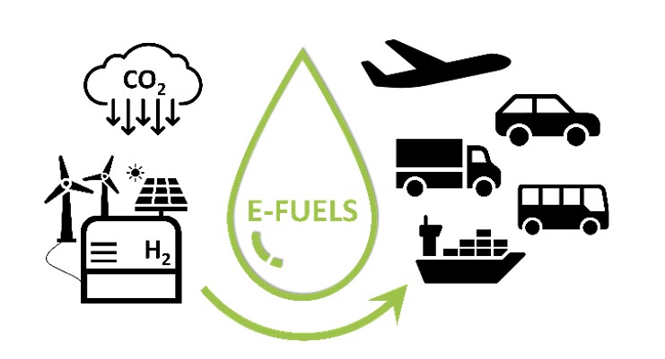 In vielen Anwendungsfällen kann Wasserstoff derzeit noch nicht direkt als Energieträger eingesetzt werden. Das betrifft insbesondere Anwendungen in der Schifffahrt oder Luftfahrt, aber auch stationäre Anwendungen, z.B. Hochtemperaturprozesse. In derartigen Fällen kommen aus Wasserstoff und CO2 hergestellte synthetische Energieträger, sog. E-Fuels, zum Einsatz. Beispiele sind synthetisches Methan (Hauptkomponente von Erdgas), synthetisches Methanol, E-Diesel oder synthetisches Kerosin. E-Fuels haben den Vorteil, dass sie in bestehende Infrastruktur integrierbar sind, eine höhere Energiedichte aufweisen und einfacher zu lagern und zu transportieren sind.