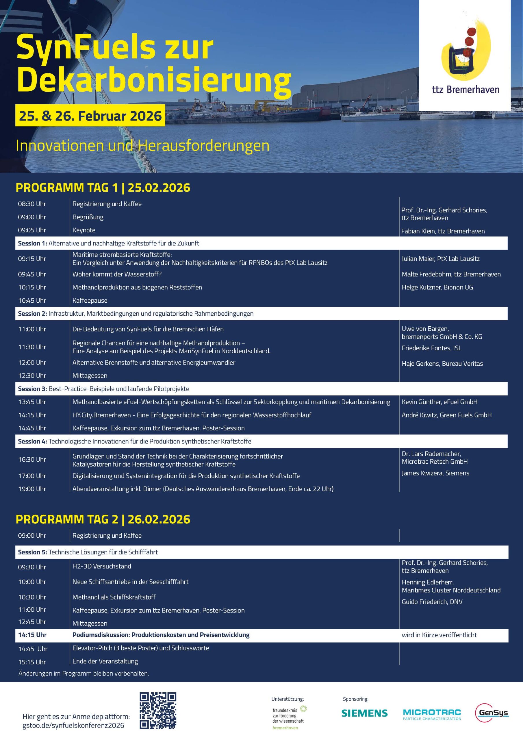 Am 25. und 26. Februar 2026 findet in Bremerhaven die Konferenz “SynFuels zur Dekarbonisierung – Innovationen und Herausforderungen” statt.